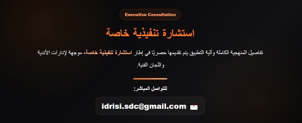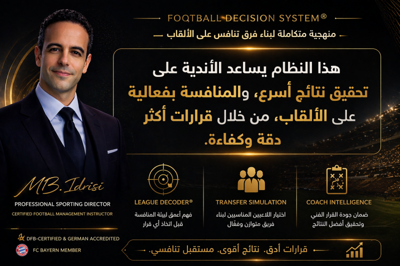 للأندية التي تبحث عن وضوح أكبر في القرار الكروي ومسار تنافسي أكثر دقة، يمكنكم طلب استشارة تنفيذية خاصة و يتم الرد فقط على الطلبات الجادة المرتبطة بمشاريع تطوير تنافسية