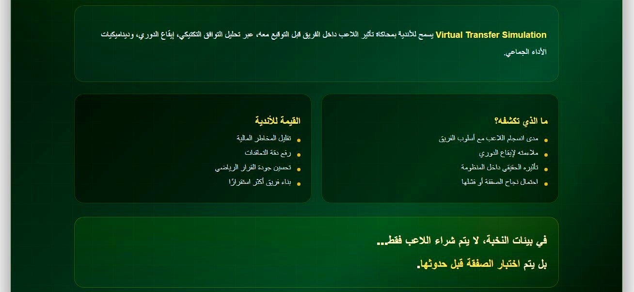 League Decoder® + Coach Decision Intelligence + Virtual Transfer Simulation