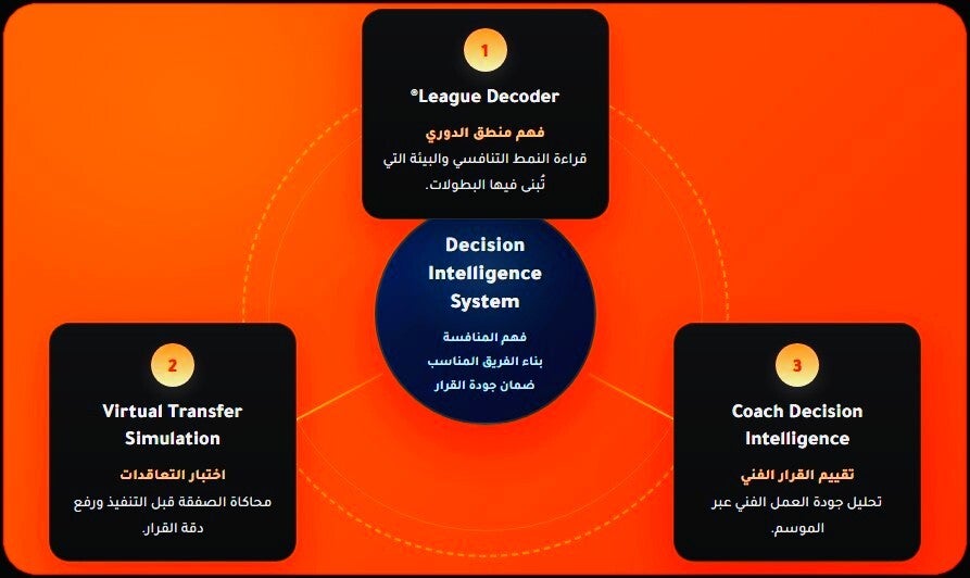 بل هو نتيجة نظام يربط بين فهم منطق الدوري بشكل استباقي وتقليل المخاطر في بناء الفريق باتخاذ قرارات تعاقدية أدقع و تقييم وتحسين نتائج الفريق خلال الموسم